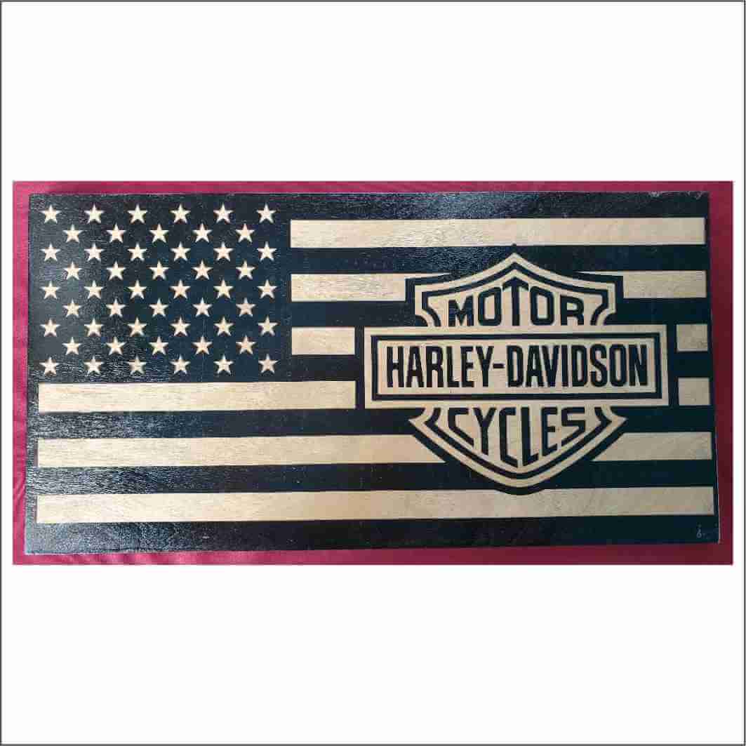 Celebrate America and your heroes with this “Harley” Commemorative Wood Flag!