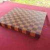 12-3/4″ x 14-1/4″ x 1-3/8″ and is made from American Walnut, Cherry and Purple Heart hard woods.